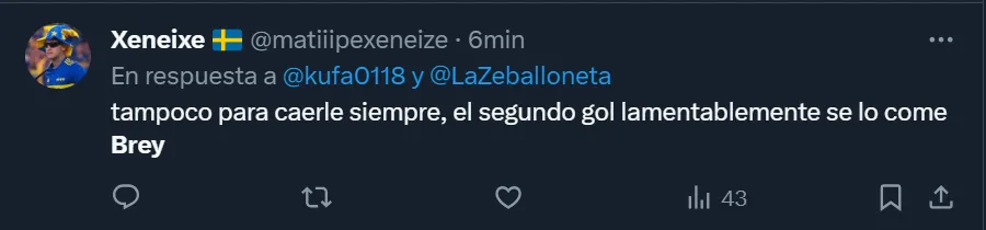 Hubo quienes también se encargaron de adjudicarle empate de la Celeste al nacido en Lomas de Zamora, dado a que después del gran centro que envió Juan Cruz De los Santos llegó el remate del futbolista de Gimnasia y Esgrima de La Plata, que dejó sin reacción al golero xeneize.