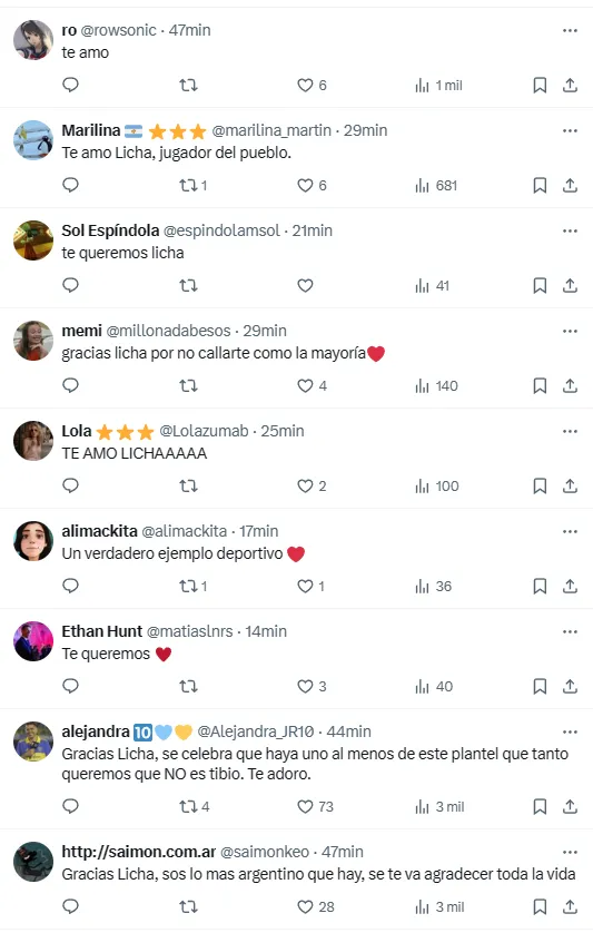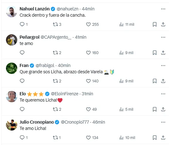 Las respuestas que dejaron cientos de sus seguidores en redes sociales fueron de aliento, desde varios “te amo” y “te quiero” hasta comentarios más elaborados como “crack dentro y fuera de la cancha” y “un verdadero ejemplo deportivo” en favor del mensaje que difundió el jugador desde sus cuentas oficiales.
