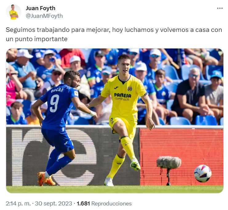 En el empate 0 a 0 entre Villarreal y Getafe, el ex-Estudiantes tuvo que ser reemplazado acusando un problema muscular. Sucedió a los 28 minutos del segundo tiempo y en su lugar ingresó Ramón Terrats.
