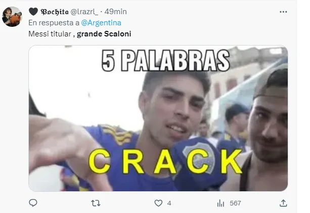 Desde la previa de este duelo, los hinchas argentinos hicieron eco en las redes sociales, sobre todo en Twitter, en donde hicieron tendencia al partido y lo palpitaron con diversos meses, muchos de ellos relacionados al horario de inicio, que era a las 23:00 horas de nuestro país, mientras que otros bromeaban con que se jugaba el día que finalizó el fin de semana largo.