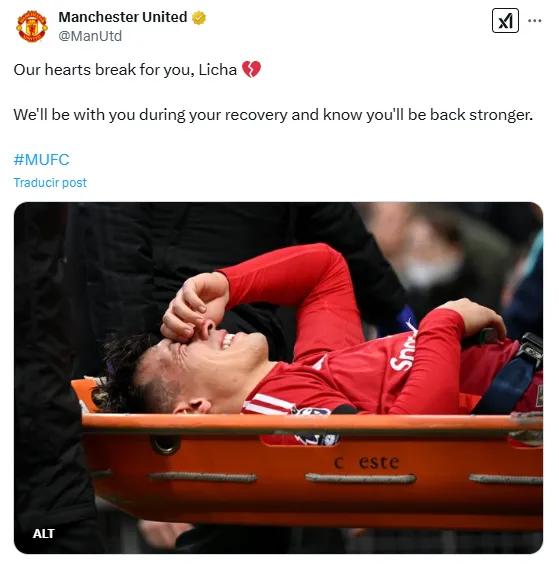 Por su parte, las cuentas oficiales de redes sociales del Manchester United publicaron un mensaje de apoyo para el ex Defensa y Justicia y Newell’s Old Boys, con el cual tampoco dejan ver demasiadas esperanzas de que sea algo leve: ”Nuestros corazones se rompen por ti, Licha. Estaremos contigo durante tu recuperación y sabemos que volverás más fuerte”.