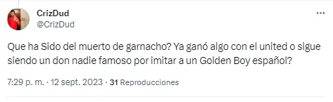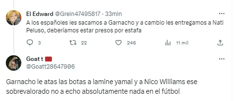Comentarios como “sobrevalorado”, “traidor” o términos futboleros como “muerto” para calificar el rendimiento de un jugador, son algunos de los posteos que aparecieron en Twitter tras el ingreso de Garnacho.
