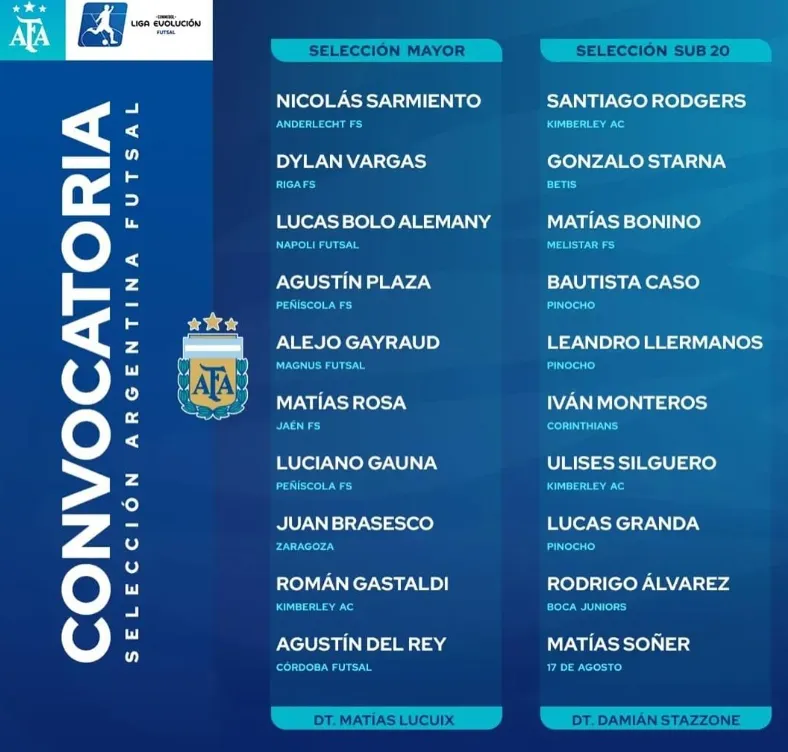 Las listas de concentrados de la Selección Argentina de Futsal