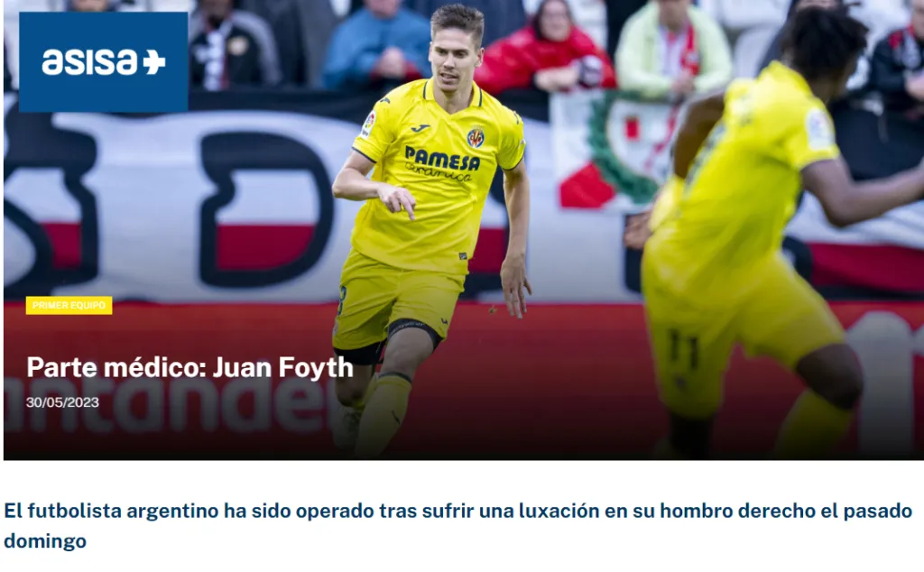 “El futbolista del Villarreal CF, Juan Foyth, ha sido operado este martes”, escribió el Submarino Amarillo en un comunicado médico y agregó: “El tiempo de recuperación estará supeditado a la evolución del futbolista”.