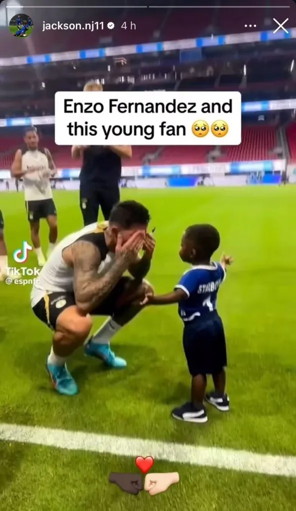 Este último, no eligió las palabras para mostrar su respaldo al argentino, sino que eligió publicar una foto en la que ambos comparten entrenamiento, también junto a Marc Cucurella; y un video del ex River jugando con un pequeño aficionado negro.
