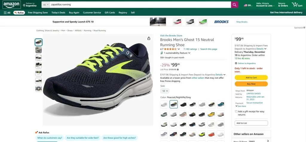 - Revisá la sección “Información de envío” o “Shipping Information” y buscá la opción “Deliver to” (Enviar a). Allí podrás ver si el vendedor hace envíos a Argentina. Si no aparece explícitamente “Argentina”, es posible que el producto no pueda ser enviado directamente al país.