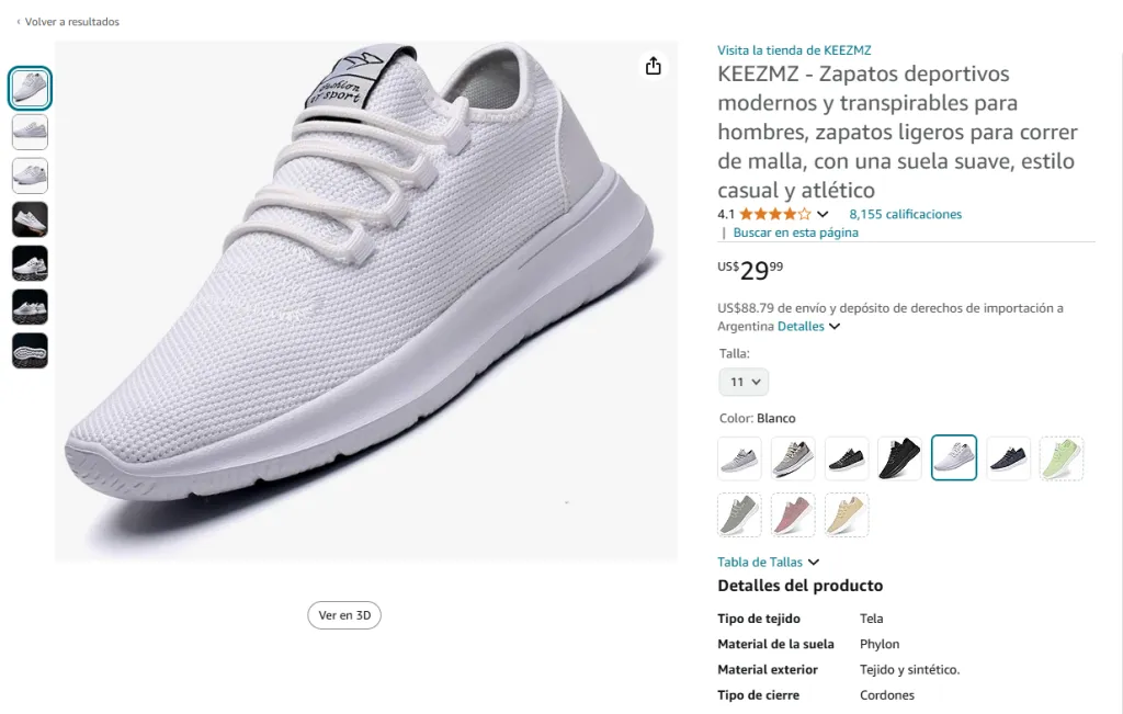- Zapatos deportivos modernos y transpirables: Tener un buen par de zapatillas es esencial para prevenir lesiones y mejorar tu rendimiento. En Amazon encontrás calzado deportivo de alta calidad diseñado para correr, caminar o hacer entrenamiento en el gimnasio.