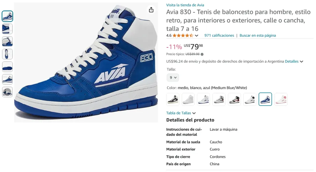 Avia 830 – Tenis de baloncesto para hombre, estilo retro: Las Avia 830 eran las clásicas zapatillas elegidas por los profesionales a principios de la década de los ‘80. Un modelo retro que también podés conseguir en Amazon.