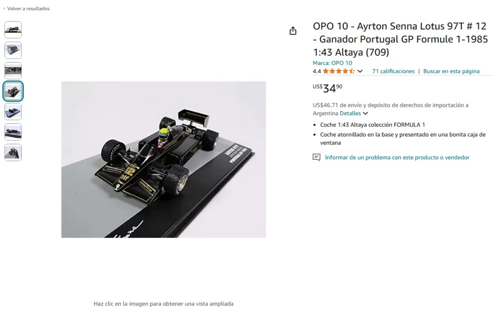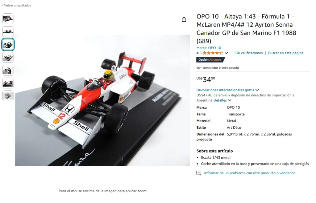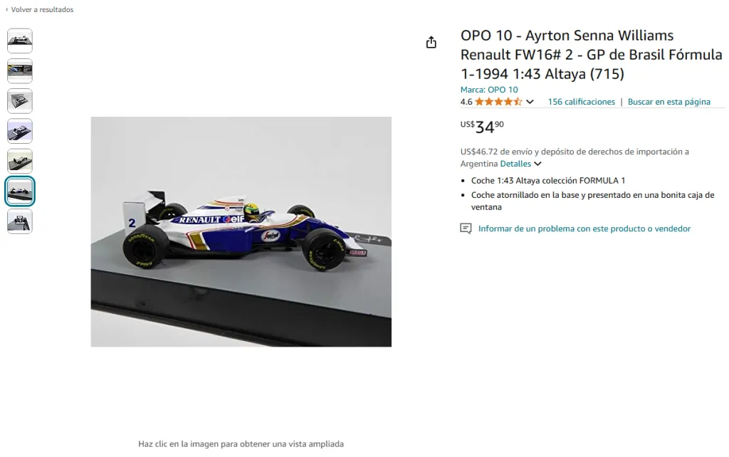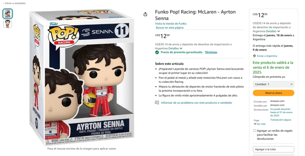 - Reseñas y valoraciones: Las reseñas de otros compradores te ayudan a tomar decisiones informadas. Verás lo que otros fans piensan sobre los productos de Ayrton Senna, lo que te permitirá elegir los mejores artículos según la calidad y el diseño.