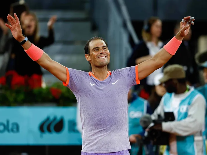El gesto de Rafa Nadal con el argentino Pedro Cachín tras vencerlo en el Masters de Madrid