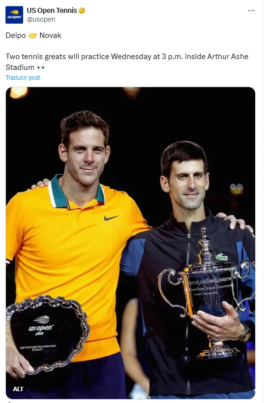Justamente, Nole y Del Potro se entrenaron juntos en el mítico Arthur Ashe, en la previa al duelo del tandilense con Gaby Sabatini, y le permitieron a los espectadores disfrutar del reencuentro de dos grandes amigos y rivales durante las últimas décadas en el circuito ATP.
