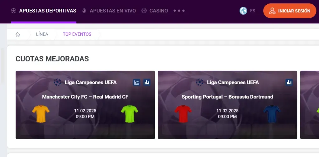 - Realiza una o más apuestas válidas por un importe total equivalente a cinco (5) veces tu depósito inicial en mercados de apuestas deportivas con cuotas mínimas de 1.5 en apuestas simples o 1.7 en apuestas combinadas.