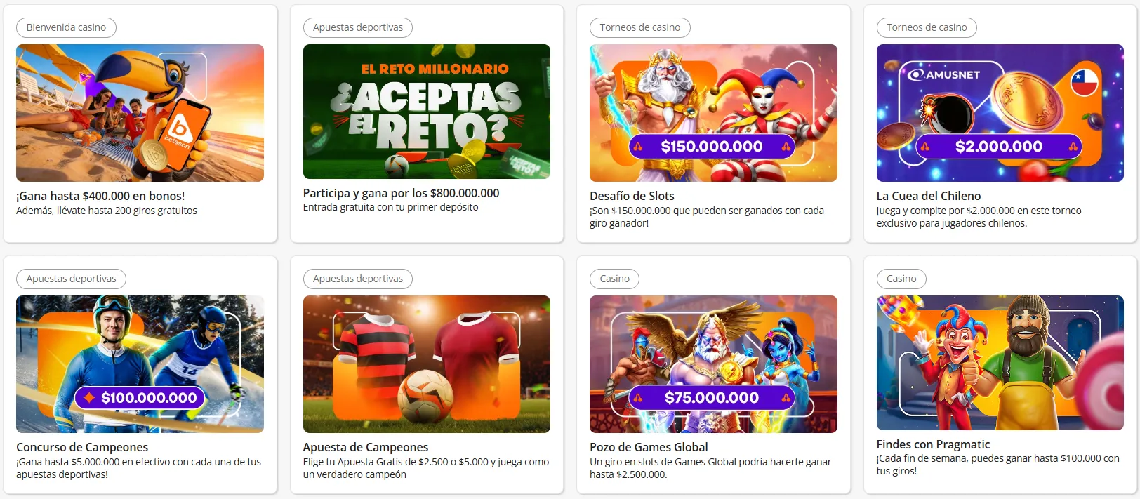| Bono de bienvenida Betsson casino | Bono de hasta $400.000 + 200 giros gratis | Obtén la oferta |