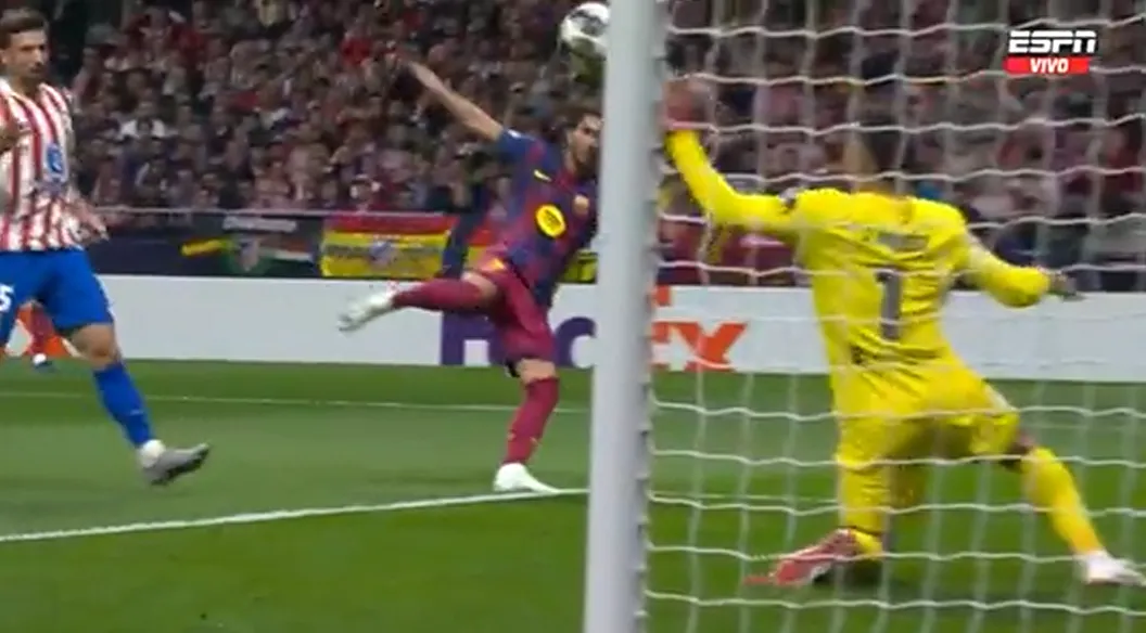 Se anula la conquista culé por posición offside de Ferrán Torres cuando Gavi tocó el balón dentro del área ¡Se salvó el Aleti!