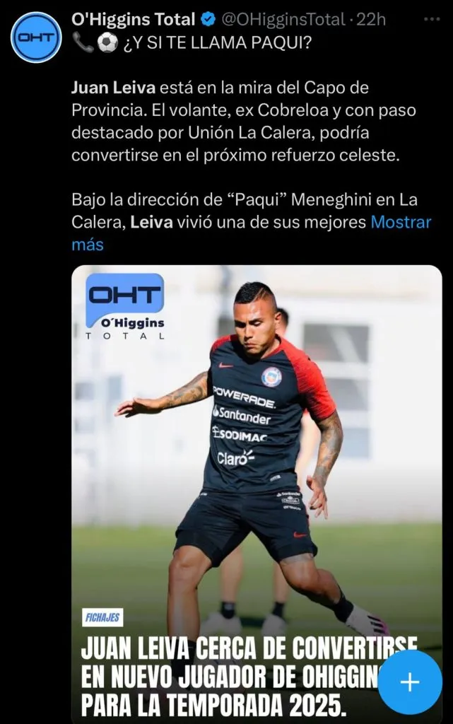Según informaron desde el medio partidario ‘O’Higgins Total’ en su cuentade ‘X’ , el mediocampista nacional estaría muy cerca de ser nuevo refuerzo de O’Higgins de Rancagua para la temporada 2025.