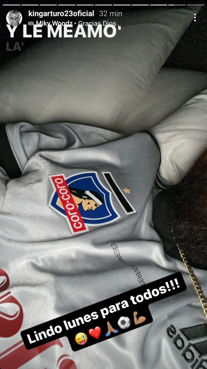 Minutos más tarde, sería el mismo rey Arturo quien subió otra historia a su cuenta personal de Instagram en la cual se ve la camiseta de Colo Colo con el mensaje “lindo lunes para todos”.
