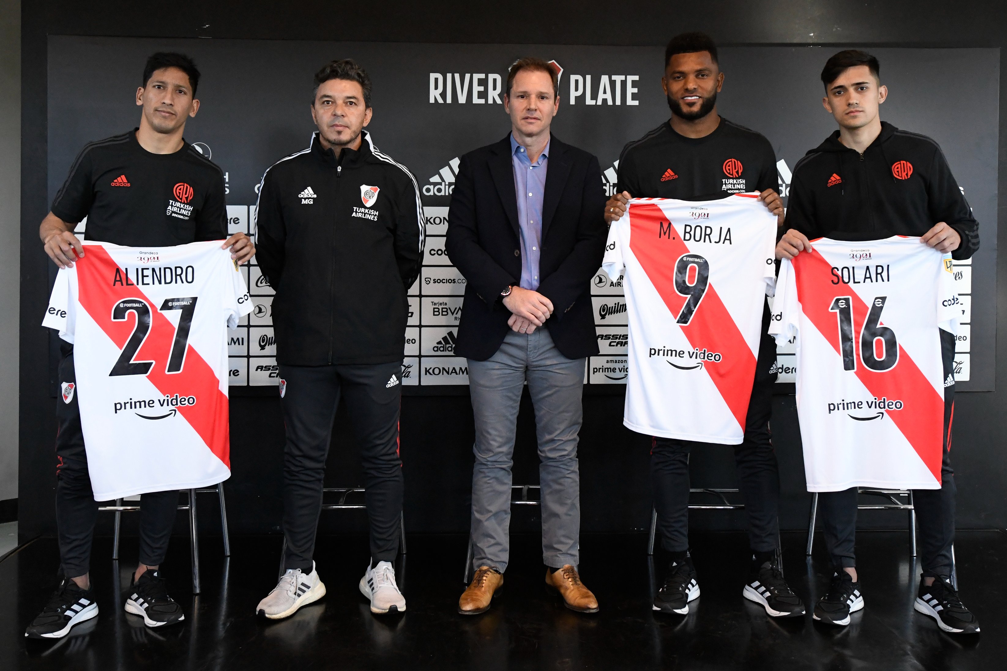Colo Colo ya quedó atrás en la carrera de Pablo Solari, quien esta semana empezó su nueva etapa como jugador de River Plate. Hoy fue presentado ante la prensa trasandina, donde estuvo al lado de Miguel Borja y Rodrigo Aliendro, los otros dos refuerzos millonarios, además de su nuevo entrenador Marcelo Gallardo.