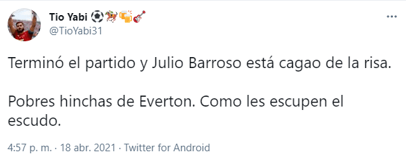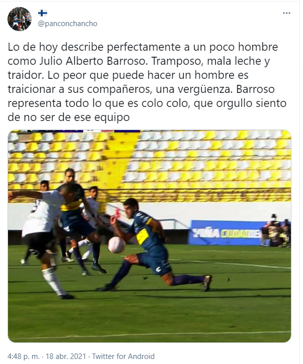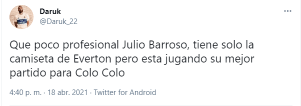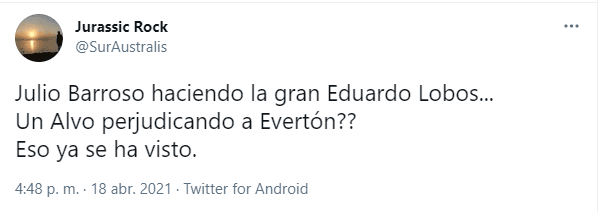Las redes sociales son las instancias donde los hinchas realizan sus respectivos descargos tras los partidos y que sin duda esta no fue la excepción. Los hinchas evertonianos, pero no tanto solo ellos, sino que también azules y cruzados criticaron a Barroso por la falta penal que hizo.