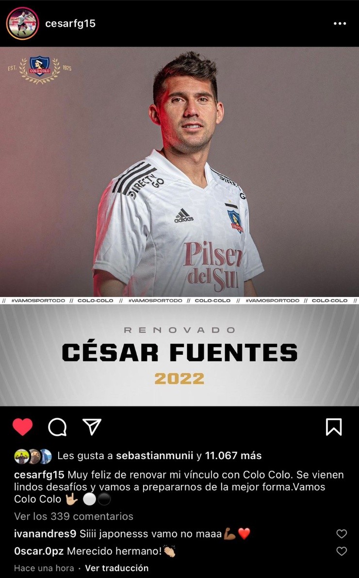 Fue el propio futbolista quien, a través de las redes sociales, mostró su felicidad y entregó algunas palabras para lo que se avecina. “Muy feliz de renovar mi vínculo con Colo Colo. Se vienen lindos desafíos y vamos a prepararnos de la mejor forma. Vamos Colo Colo”.