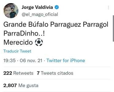 “Grande Búfalo Parraguez, Parragol, Parradinho! Merecido” fue el mensaje de Valdivia en Twitter que desató una ola de elogios en el tuit y varios sobre nombres que se suman a los que Parraguez ya había revelado, como “Parradona”.