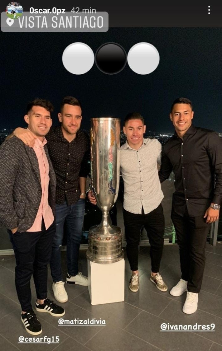 Los albos entrenaron en el día para en la noche tener momento para disfrutarcon sus familias en el festejo del primer título de la era de Gustavo Quinteros al mando del primer equipo. Óscar Opazo compartió una foto juntoa César Fuentes, Iván Morales y Matías Zaldivia.