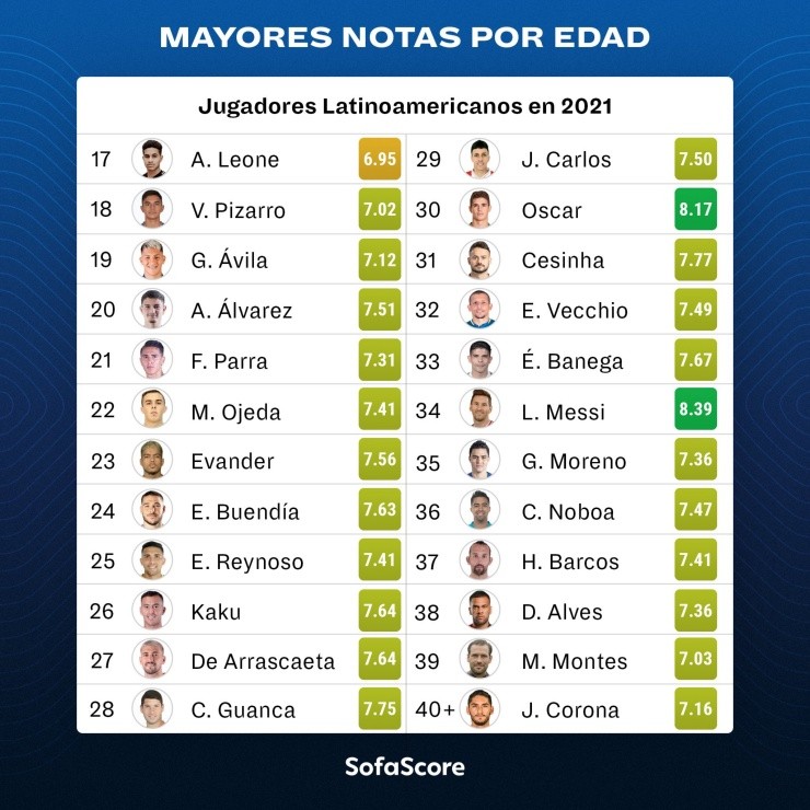 Estadísticas de SofaScore de los mejores jugadores por edad. (Foto:@SofaScoreLA)