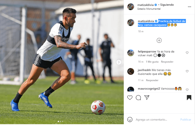 “Practica de futbol de hoy, vamos Cacique”, publicó el jugador en Instagram, compartiendo fotos haciendo trabajos con balón.
