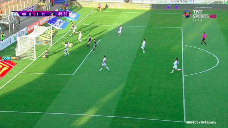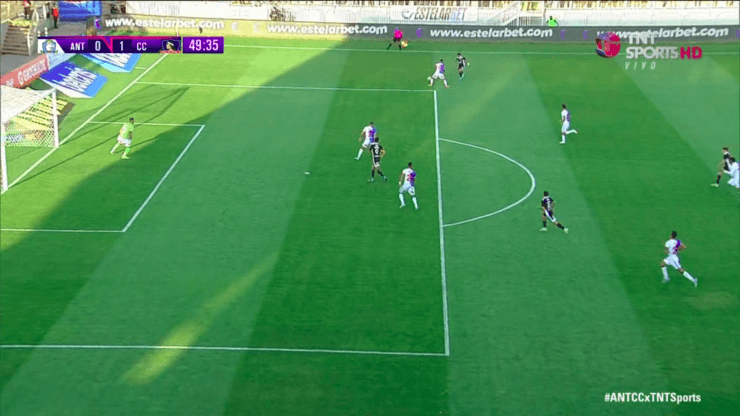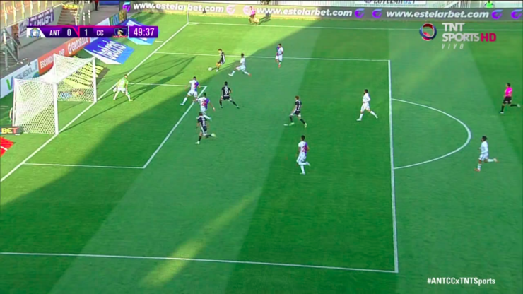 El argentino aprovechó su buena velocidad para dejar en el camino a su marcador, sacar un centro potente al segundo palo y de forma raza para encontrar bien ubicado al peruano Gabriel Costa, quien apareció en el segundo palo para definir sin arquero y decretar el uno a cero.