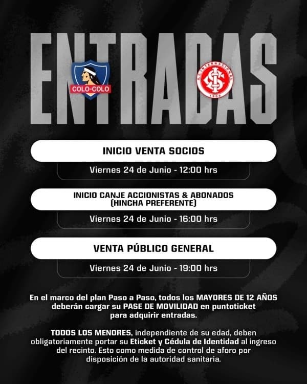 ¿Cuándo salen a la venta las entradas para Colo Colo vs Internacional de Porto Alegre?