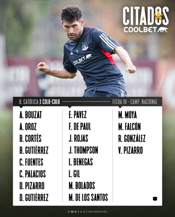 Revisa a continuación el listado de los citados de Colo Colo: