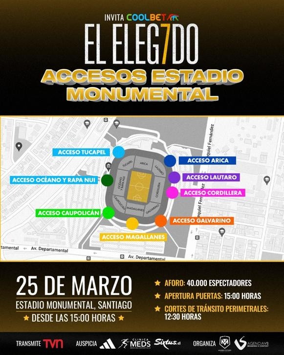 Si bien la jornada arrancará a las 17:00 horas, con el amistoso Team Paredes vs Amigos de Paredes, las puertas del Estadio Monumentalserán abiertas a partir de las 15:00 horas, mientras que se realizarán diversos corter perimetrales en Pedrero a partir de las 12:30 horas.