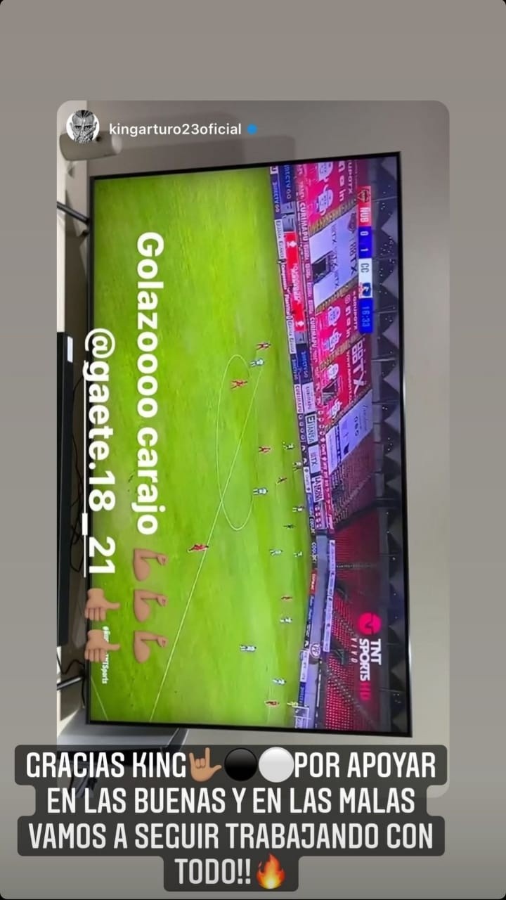 Vidal le dedicó una historia en su Instagram oficial al gol de Gaete que puso en ventaja transitoria al cacique y el actual jugador de Colo Colo no hizo esperar la respuesta y le respondió de vuelta.