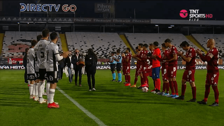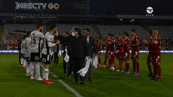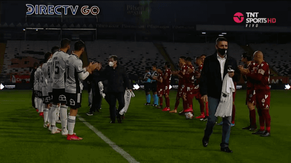 Al exarquero lo esperaban los 22 futbolistas con un pasillo: Patricio Yáñez, Raúl Ormeño, Marcelo Barticciotto, Rubén Espinoza, entre otros históricos fueron homenajeados por las actuales generaciones.