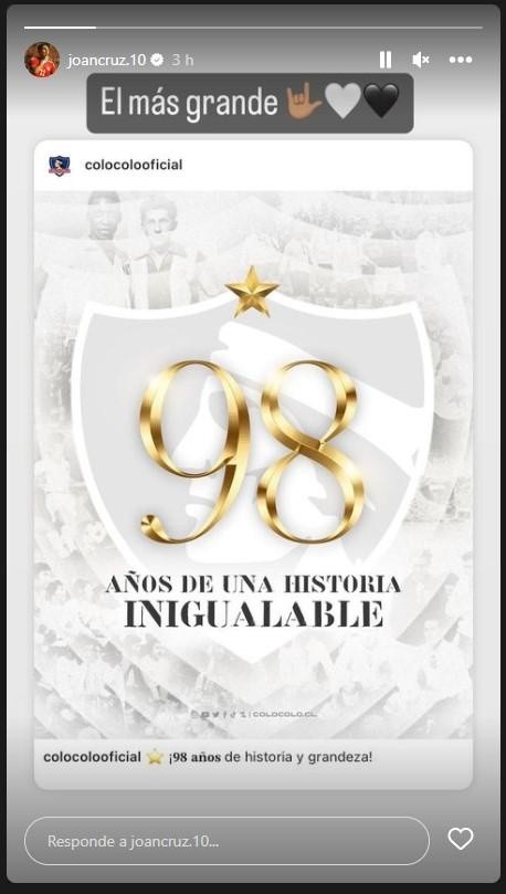 "El más grande": El escueto saludo de Joan Cruz a Colo Colo en su aniversario 98