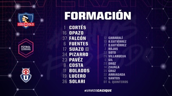 El once oficial de Colo Colo para enfrentar a la Universidad de Chile en el Torneo de Verano 2022