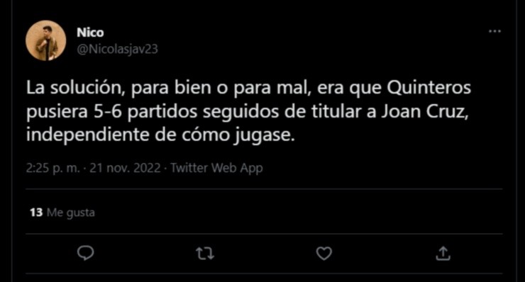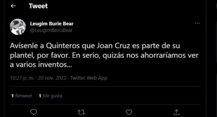 Uno de aquellos futbolistas en Joan Cruz, quien no fue prácticamente considerado por Gustavo Quinteros durante este 2022 y que al parecer tiene un pie más afuera que adentro del Cacique.