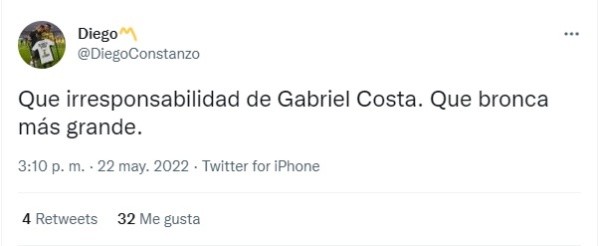 Con esta expulsión y por haber sido roja directa, Gabriel Costa no dirá presente en el cierre de la primera rueda ante Ñublense y volverá a ver acción en el plano local cuando se reanude la segunda rueda del Campeonato Nacional 2022.