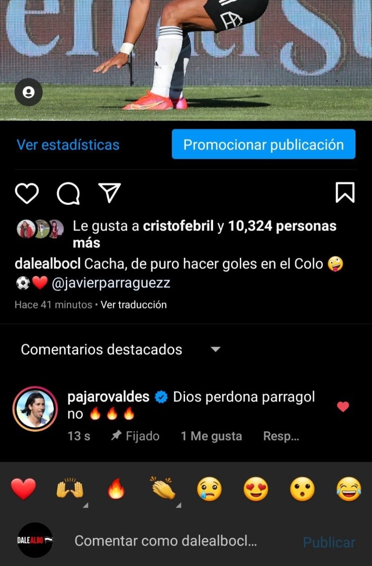 “Dios perdona, Parragol no”, fue el comentario que colocó el centrocampista que milita en San Antonio Unido a través de las redes sociales, sumándose también a lo realizo por Jorge Valdivia quien también llenó de elogios al delantero del Cacique.