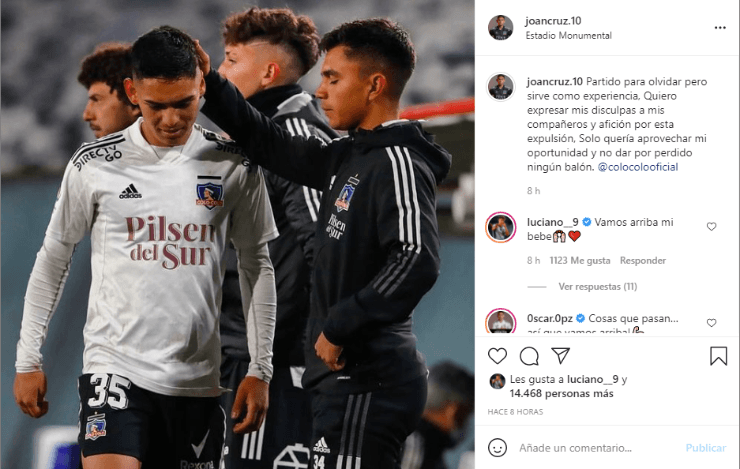 Joan Cruz pide disculpa por su expulsión en Colo Colo: “No quería dar por perdido ningún balón”