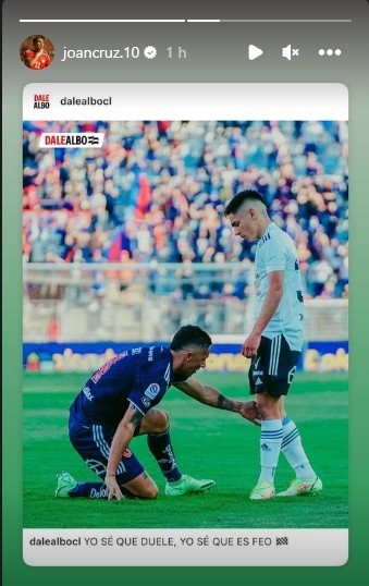 En semana de Superclásico, Cruz recordó en sus historias de Instagram el compromiso en que los albos se impusieron a la U en Rancagua en 2021, donde Cruz tuvo protagonismo y quedó en la historia por una foto que dio vuelta en las Redes Sociales.
