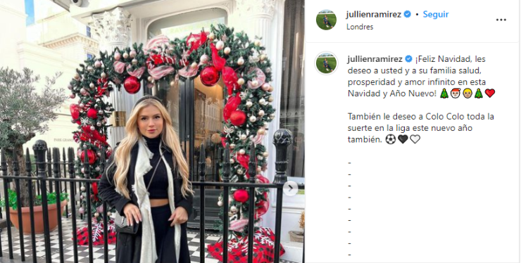 Pero, la ariete fue más allá y le mandóun mensaje al Caciqueeste lunes 24 de diciembre, épocala cual las distintasfamiliasse reúnen, comparten y se entregan regalos, tal como lo hizo Ramírez con su padre chileno en su ciudad natal.