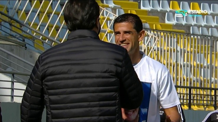 El ‘Almirante’ arrancaba como titular en el elenco viñamarino y por la cual, al momento de saludar cordialmente a quienes serían sus rivales en esta oportunidad, contó con los emotivos saludos de Barroso con todos los jugadores colocolinos.