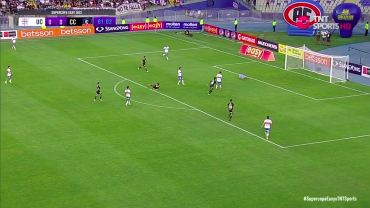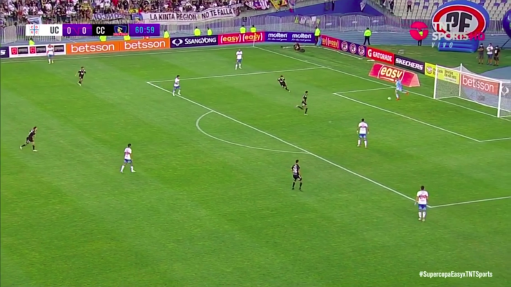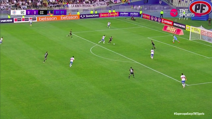 El futbolista colocolino aprovechó la presión en alto que estaba metiendo el equipo comandado por Gustavo Quinteros. Universidad Católica tomó la determinación de salir jugando en su zona defensiva, por la cual llegaría un error del portero Sebastián Pérez.