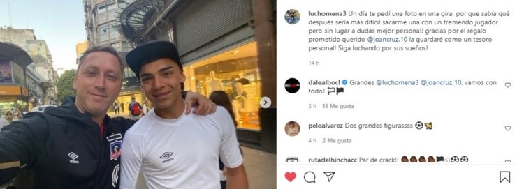 Tras esta acción, Cruz se llenó de críticas en sus Redes Sociales, algo que lo obligó a limitar los comentarios. En esta misma Red Social, Luis Mena subió una foto junto al joven canterano albo y le entregó un potente mensaje de apoyo en el difícil e injusto momento que atraviesa.