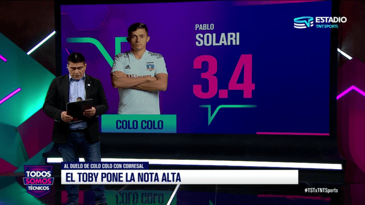 El siguiente jugador en salir a la palesta, fue Pablo “Pibe” Solari. “Bajo Solari. Toma malas decisiones. Intenta encarar que siempre es bueno eso, pero pierde muchos balones. Ante La Calera tampoco tuvo un buen rendimiento cuando entró, también tuvo ocasiones pero tomó malas decisiones. Tiene problemas en la última jugada, como cuando tiene que sacar un centro o tiene que esperar un poco. No ha sido uno de los buenos partidos de Solari. La nota: 3,4”, aseguró el ex jugador de Colo Colo.