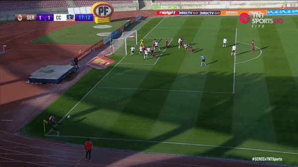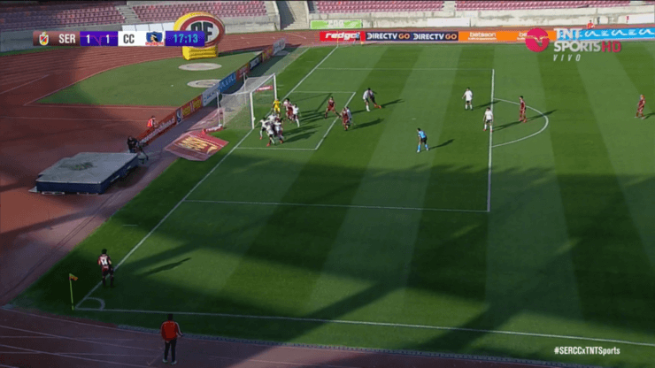 No obstante, en la jugada siguiente, ejecutó un corner desde la izquierda, al cual le dio gran efecto.