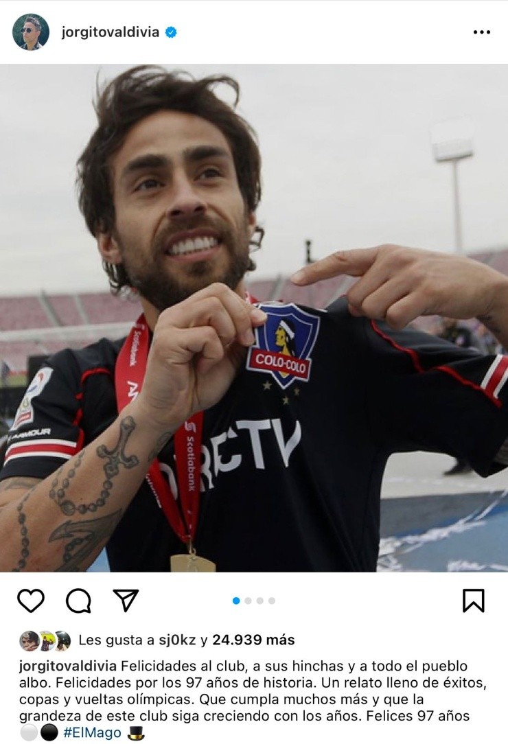 13:54 horas: Jorge Valdivia a través de su cuenta de Instagram expresó algunas palabras en memoria de este nuevo aniversario de Colo Colo.