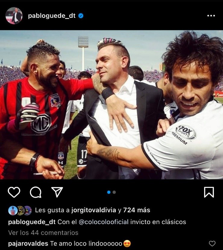 El centrocampista y exfutbolista de los albos le comentó “Te amo loco lindo”, el cual tampoco pasó desapercibido entre los seguidores del entrenador y fanáticos de Colo Colo.