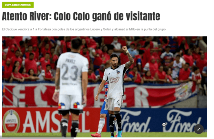 Finalmente, el sitio web partidario de la escuadra banda “La Página Millonaria” de River Plate, tildó lo siguiente. “Colo Colo ganó en Brasil y lidera el grupo junto a River”, culminaron su nota al respecto de la victoria del Cacique considerando que comparten el Grupo F.