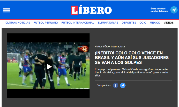No obstante, en el Líbero a pesar del triunfo colocolino, también se centraron en el cruce que tuvieron los jugadores Esteban Pavez y Carlo Villanueva. “¡Inédito! Colo Colo vence en Brasil y aún así sus jugadores se van a los golpes”.